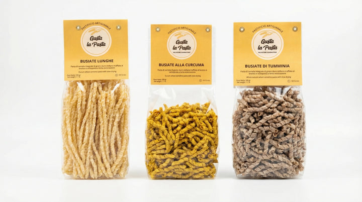 Tris di Paste Artigianali Siciliane – Tumminia, Nero di Seppia, Curcuma (3x500g)